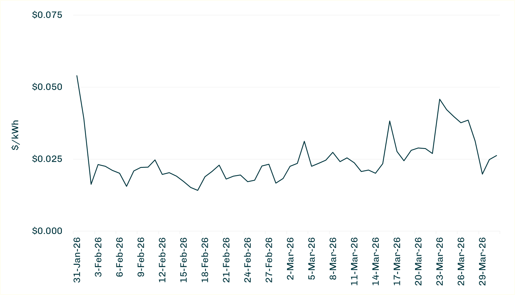 PJM Western Hub Daily Day-Ahead Wholesale LMP ($/kWh)