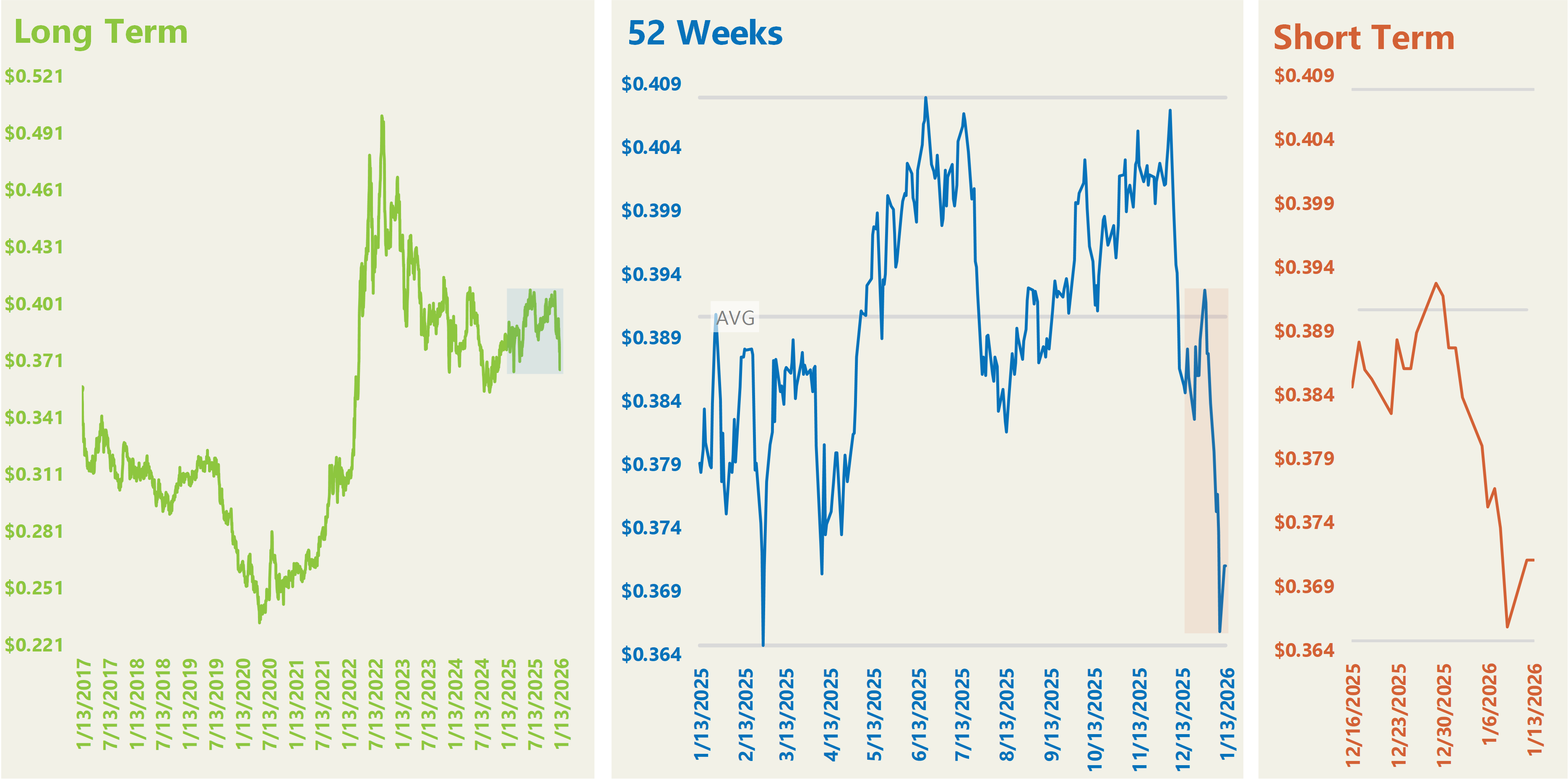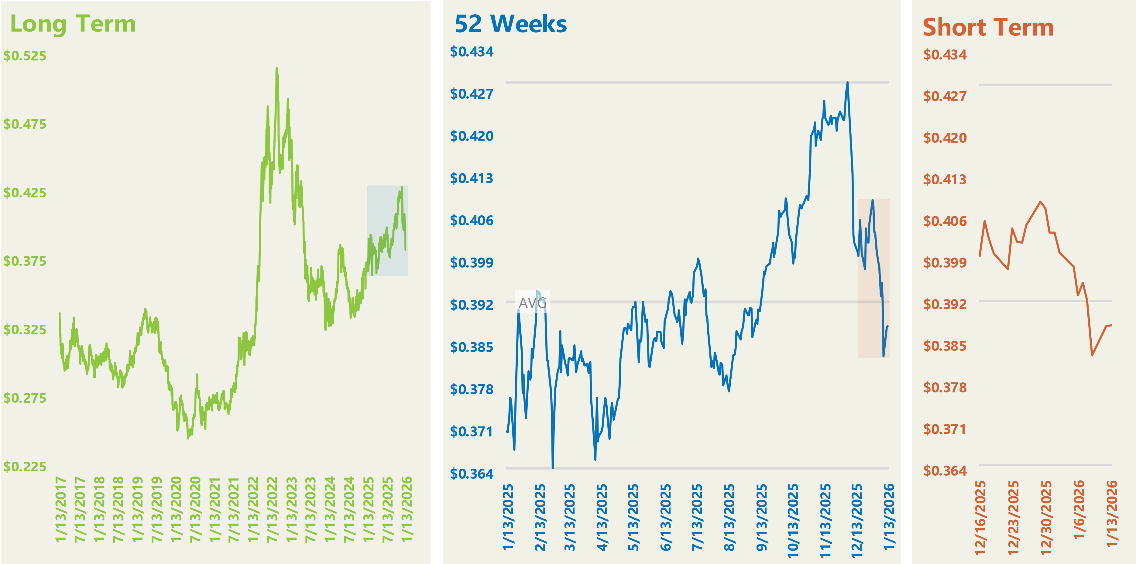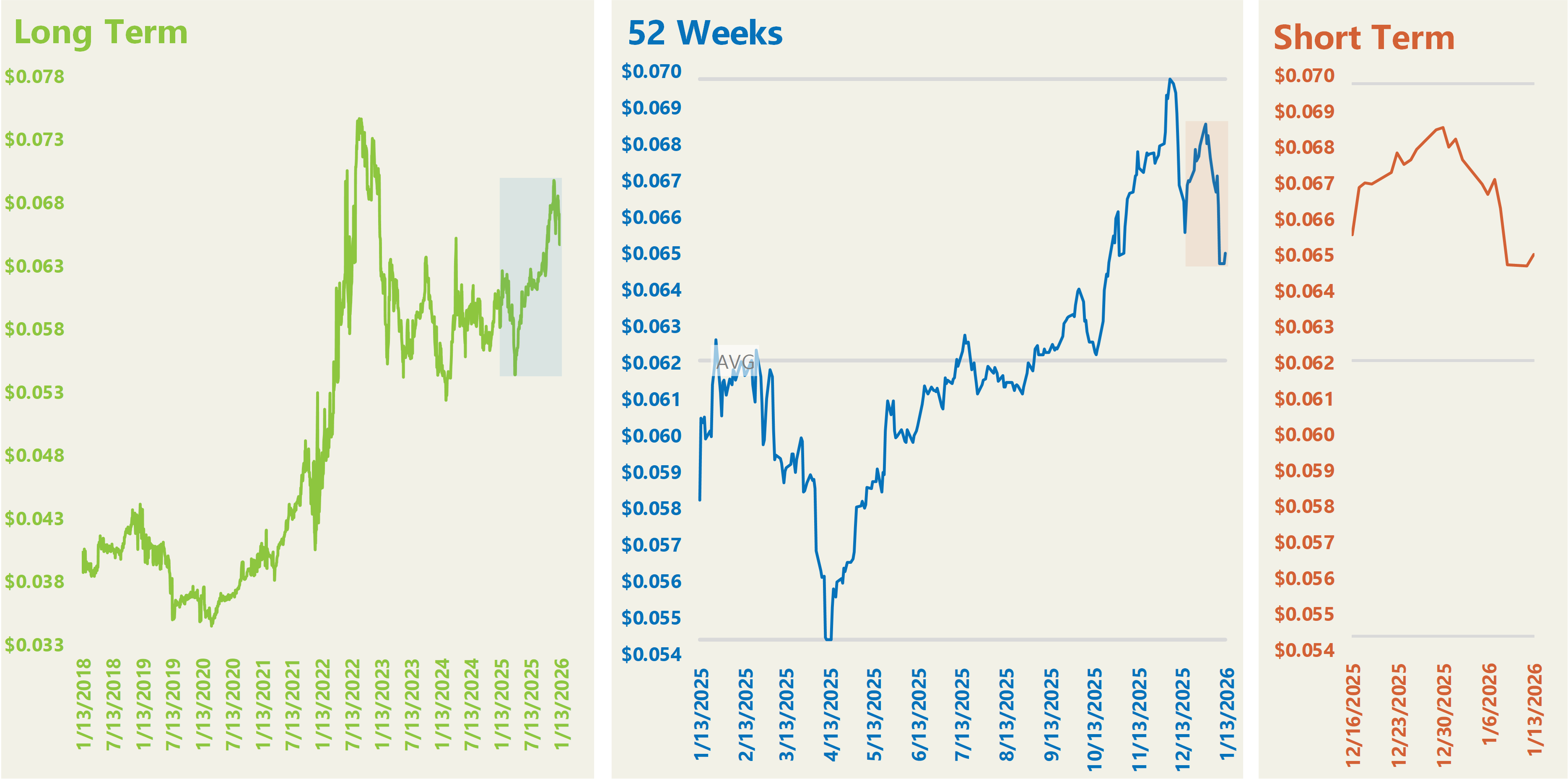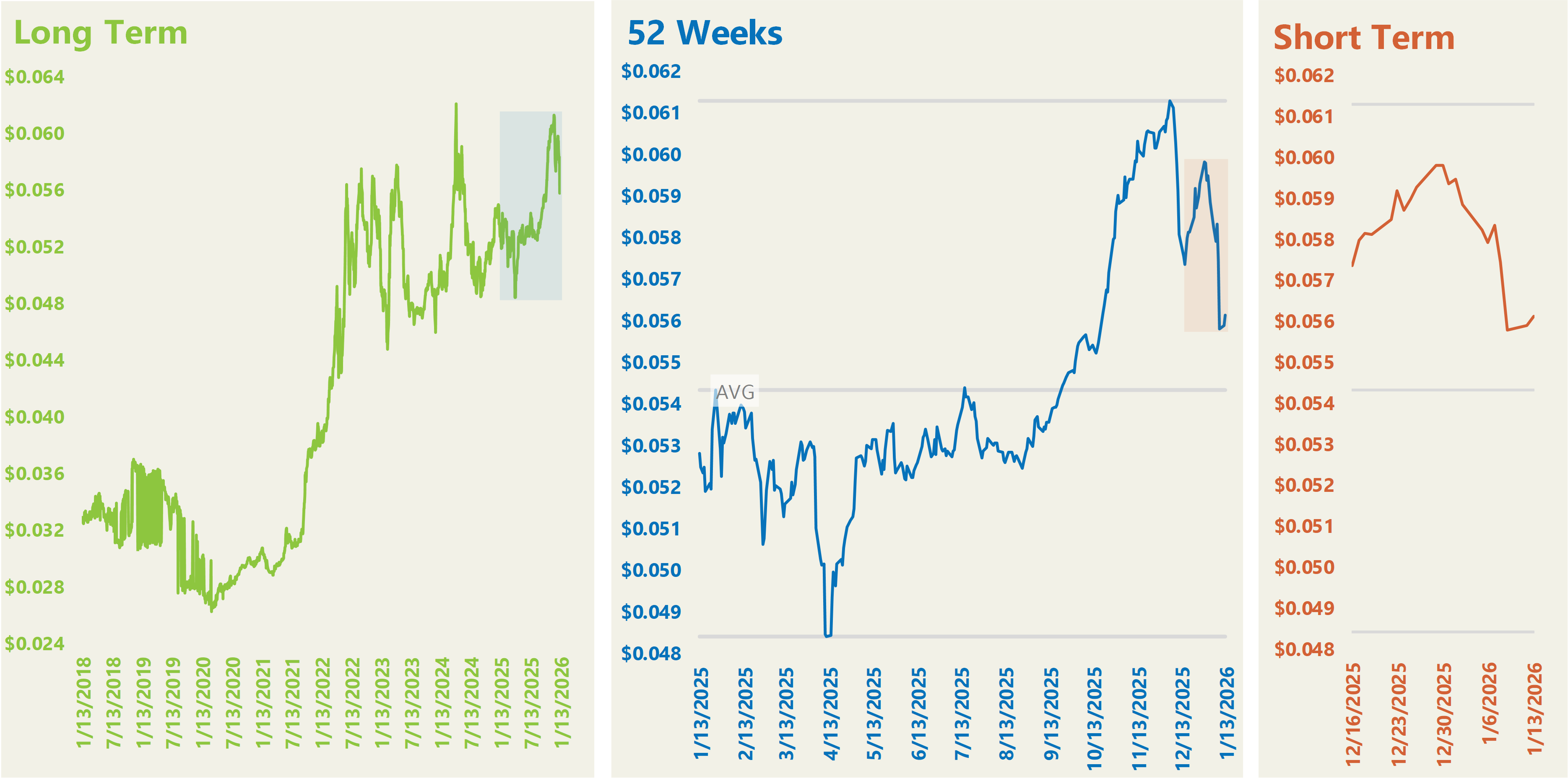 Henry Hub Wholesale Calendar Year 2026 Week to Week Fluctuation ($/Therm)