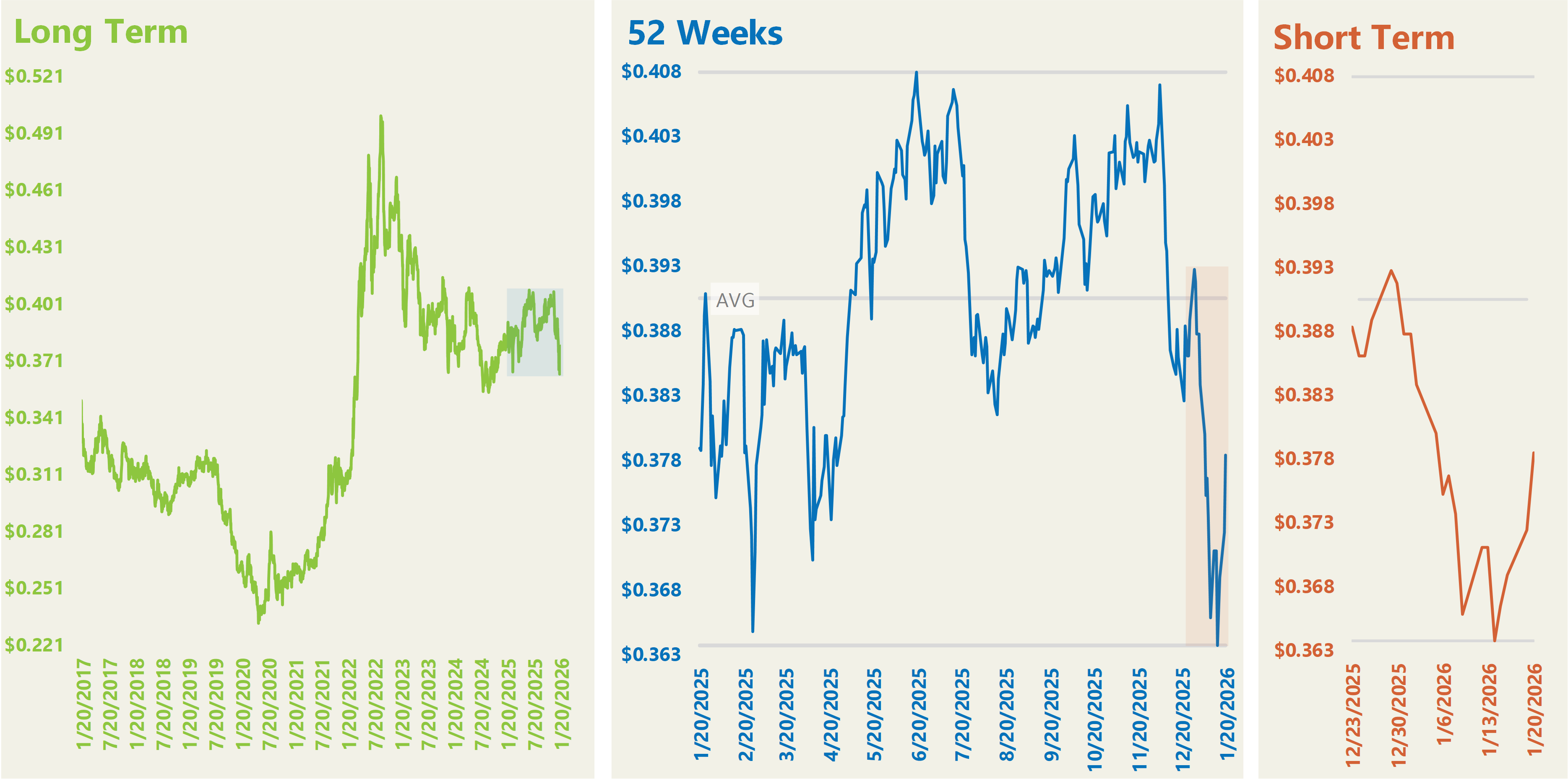 TETCO‑M3 prices are currently down about 7.5% from the December 5 52‑week high, which is about 1% above the average.