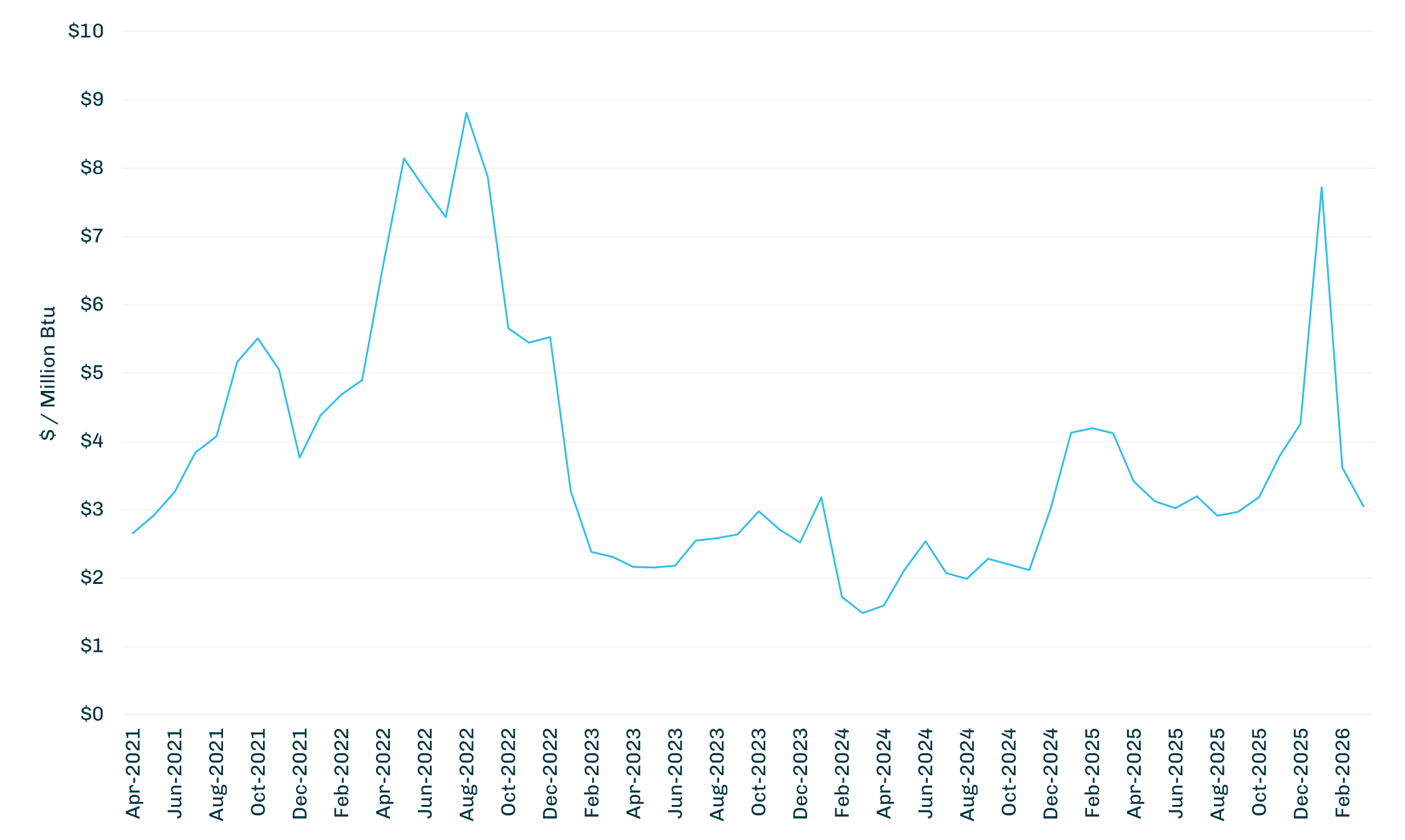 Henry Hub Natural Gas Monthly Spot Pricing - 2021-2026 ($/Million Btu)