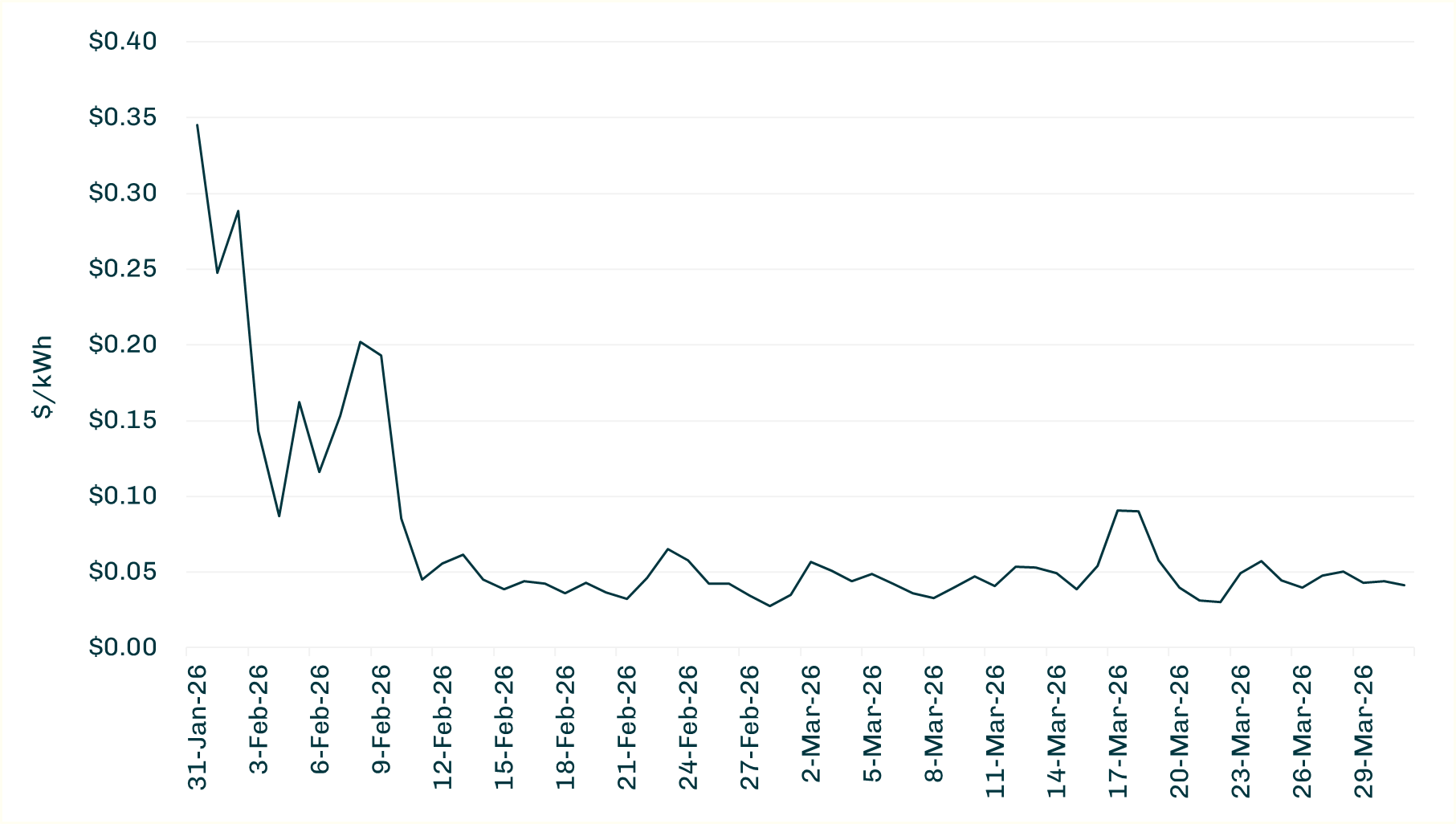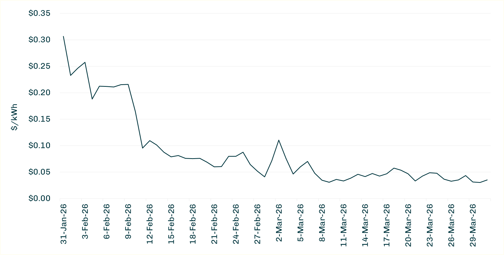 ERCOT Houston Hub Daily Day-Ahead Wholesale LMP ($/kWh)