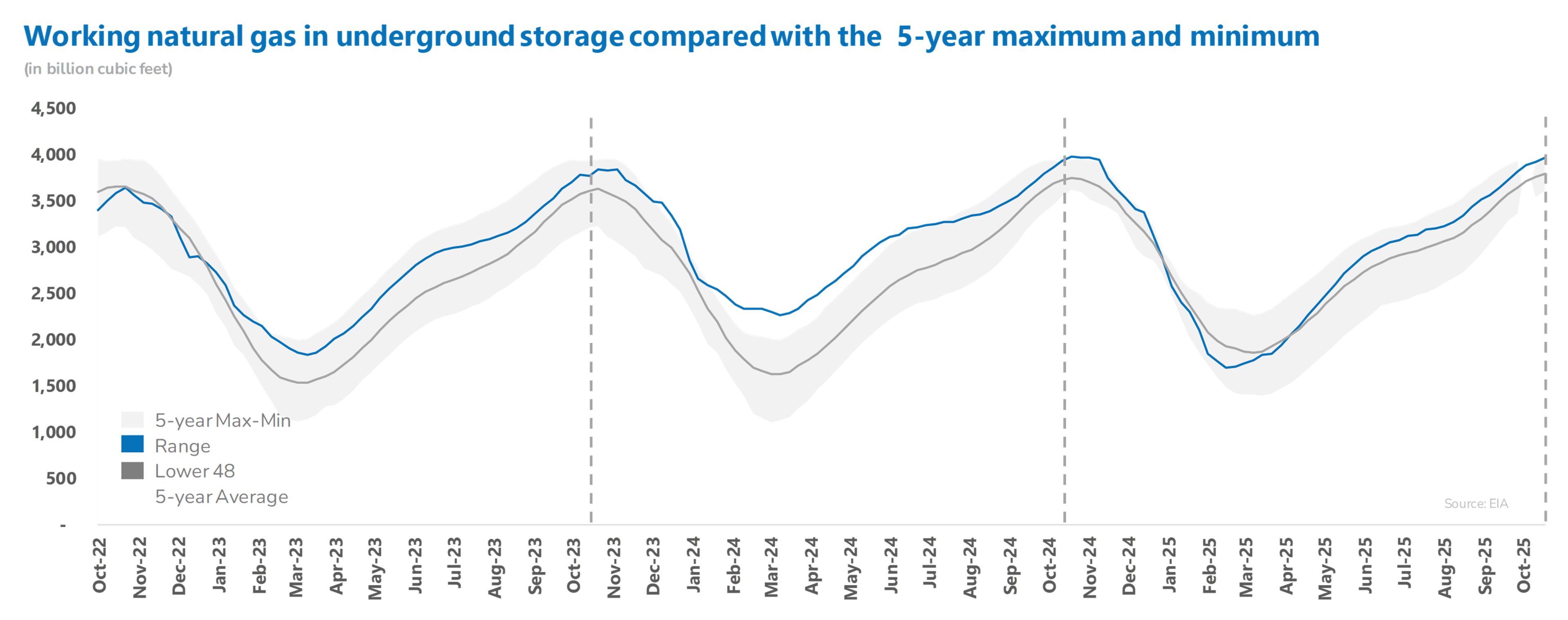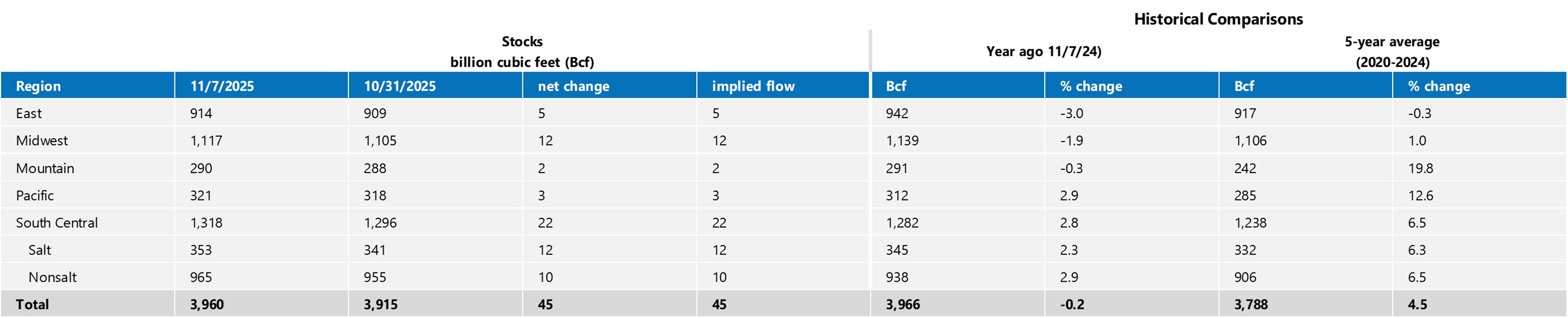 Final estimates for week ending 10/31/25 were for an injection in the 30 to 33 Bcf range.