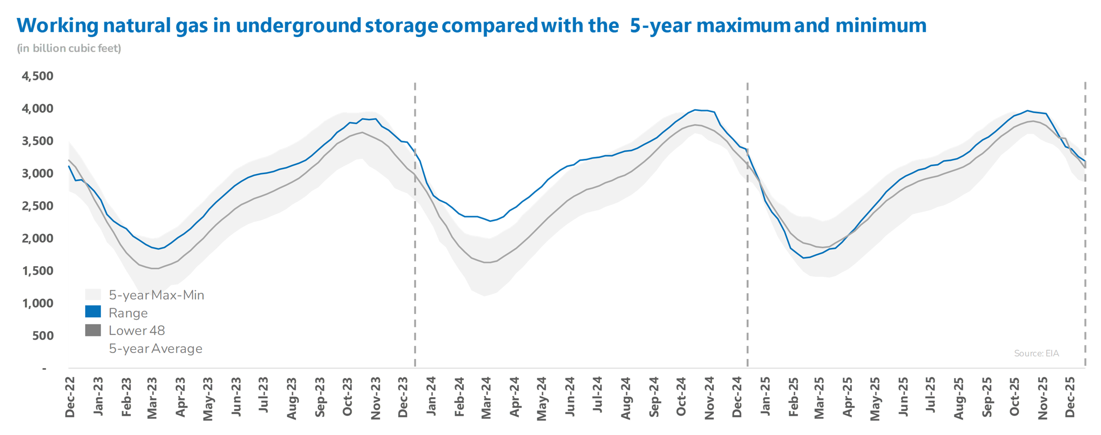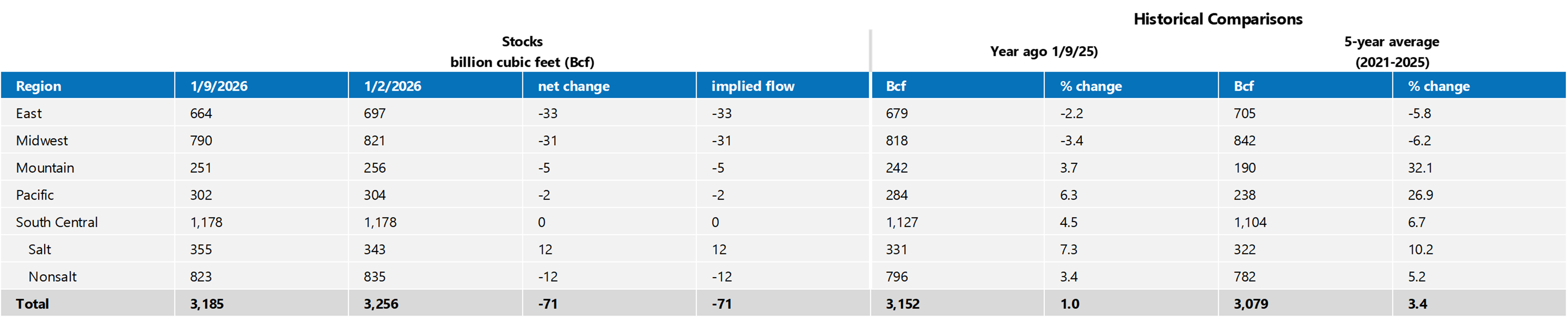 Storage is now 6 Bcf below last year, and 162 Bcf above the 5-year average, which is within the 5-year historical range.