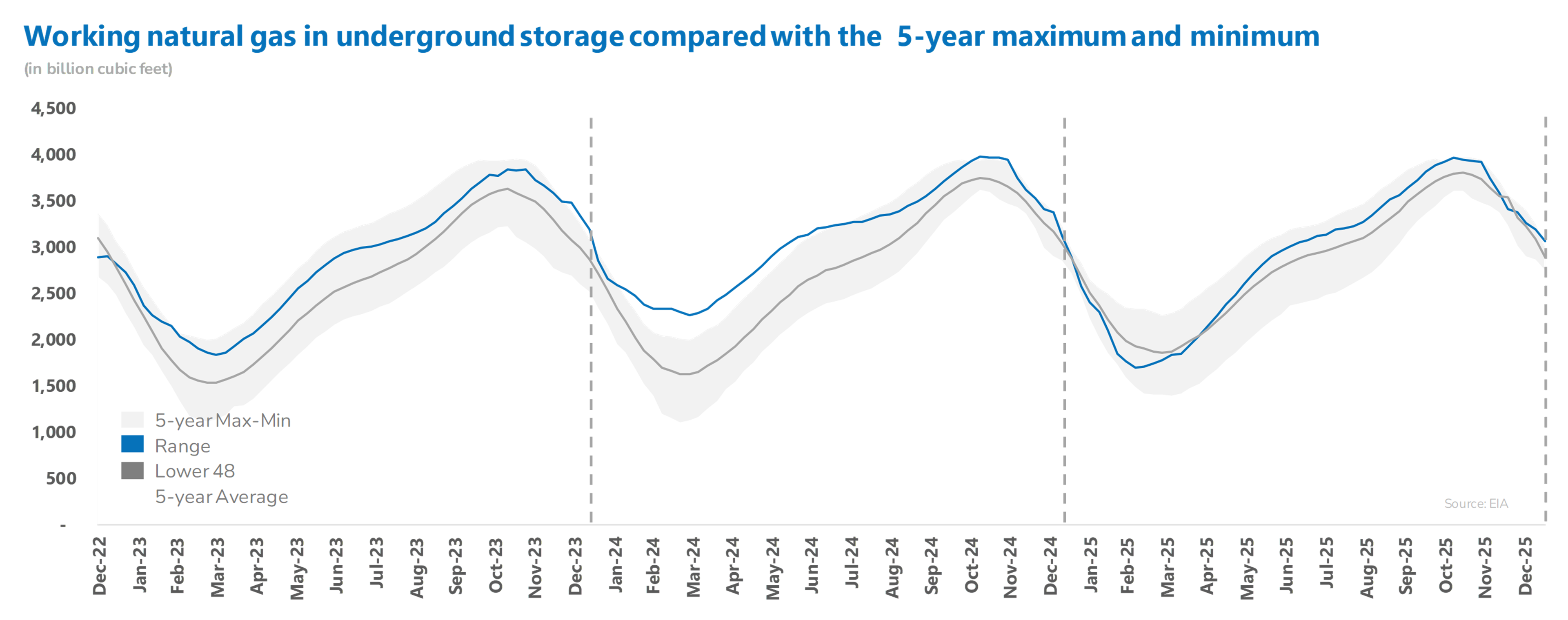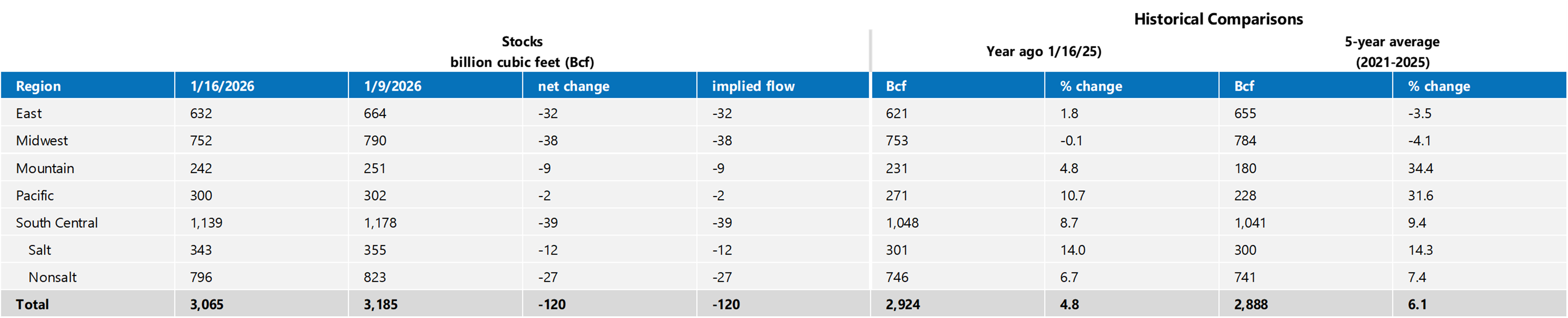 Final estimates for week ending 1/16/26 were for a withdrawal in the 98 to 101 Bcf range.