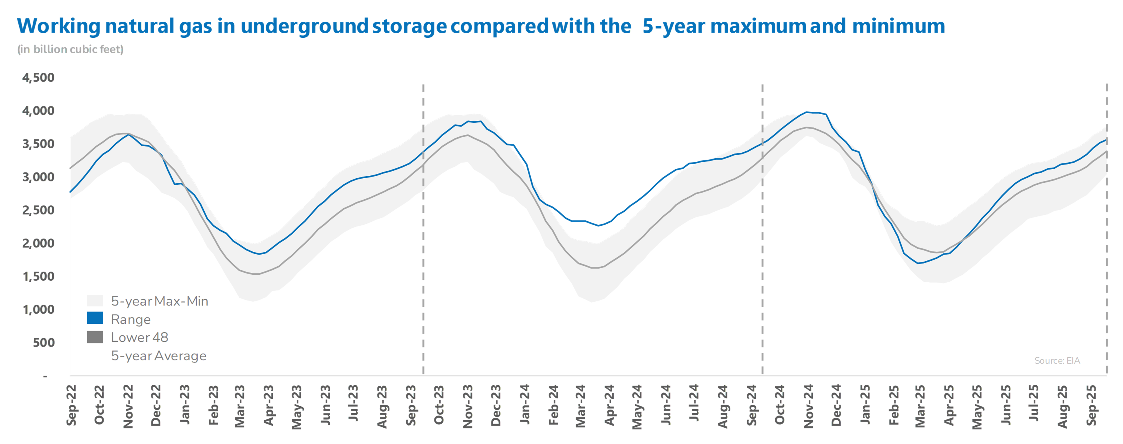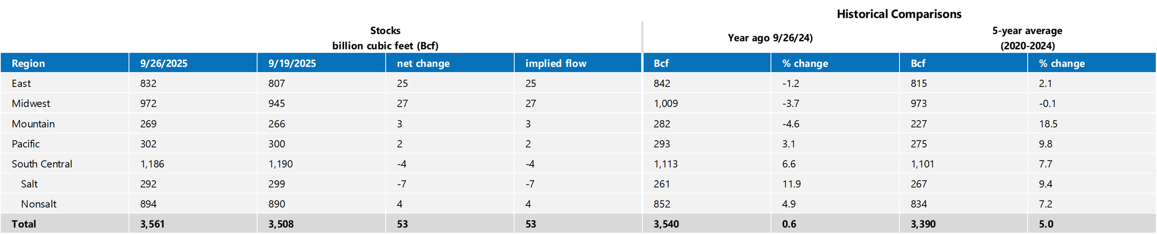 Final estimates for week ending 9/26/25 were for an injection in the 61 to 64 Bcf range.